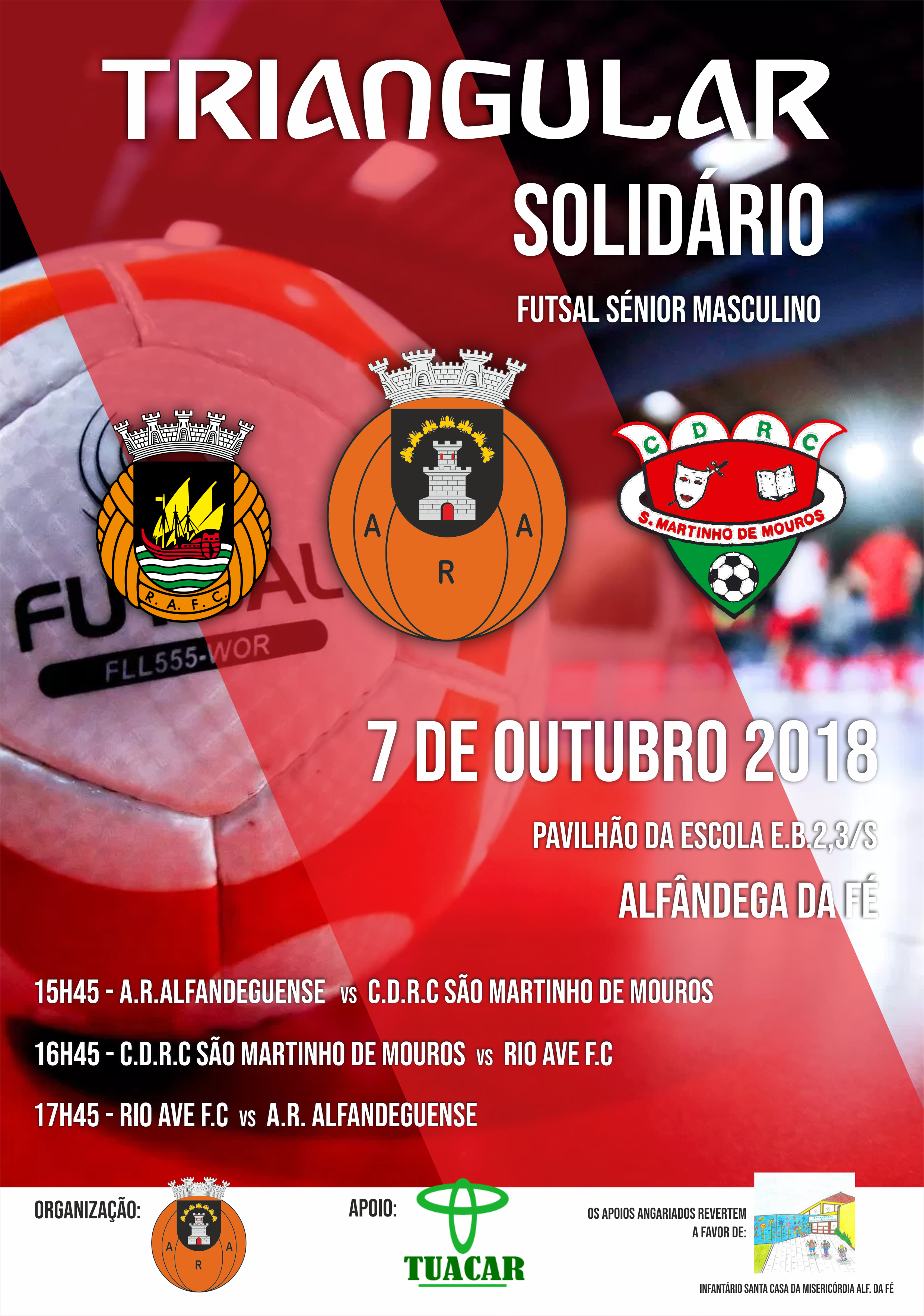 A Associação Recreativa Alfandeguense organiza o "I TRIANGULAR SOLIDÁRIO" de Futsal masculino sénior cujo objetivo maior é a RECOLHA DE BRINQUEDOS E VERBAS para as crianças do Infantário da Santa Casa da Misericórdia de Alfândega da Fé.
