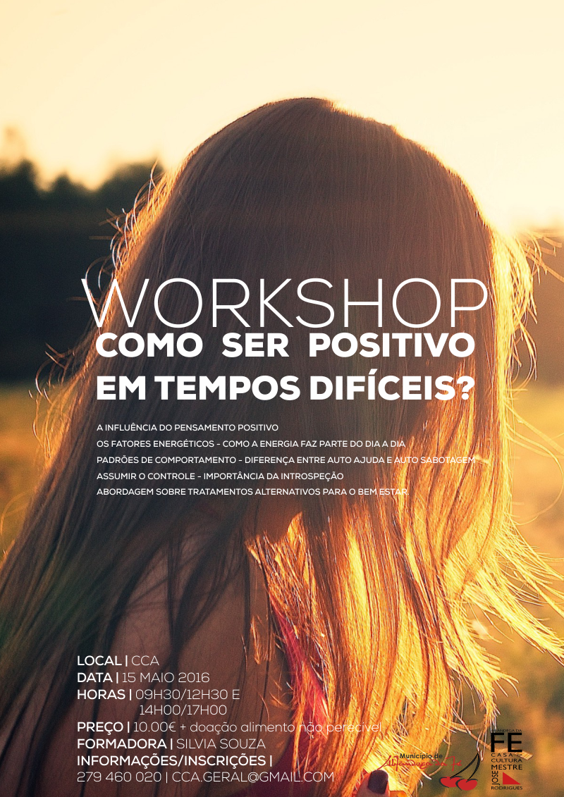 Estão a decorrer as inscrições para o Workshop “Como ser positivo em tempos difíceis?”, que vai ter lugar na Casa da Cultura Mestre José Rodrigues, em Alfândega da Fé no próximo dia 15 de maio. A iniciativa insere-se num ciclo de Workshops promovidos, anualmente, pelo município e que exploram temáticas relacionadas com estilos de vida saudável e bem-estar físico e emocional. Vai ser assim no próximo dia 15 de maio onde questões relacionadas com energia e pensamento positivo, introspeção e tratamentos alternativos sobre o bem-estar vão ser abordadas. O workshop promete fornecer dicas e técnicas que ajudem os participantes a encarar a vida e os tempos mais difíceis de uma forma positiva.