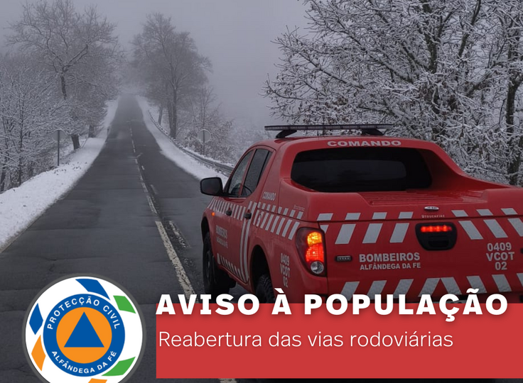 Informa-se toda a população que, as vias anteriormente encerradas no concelho de Alfândega da Fé já se encontram abertas ao ...