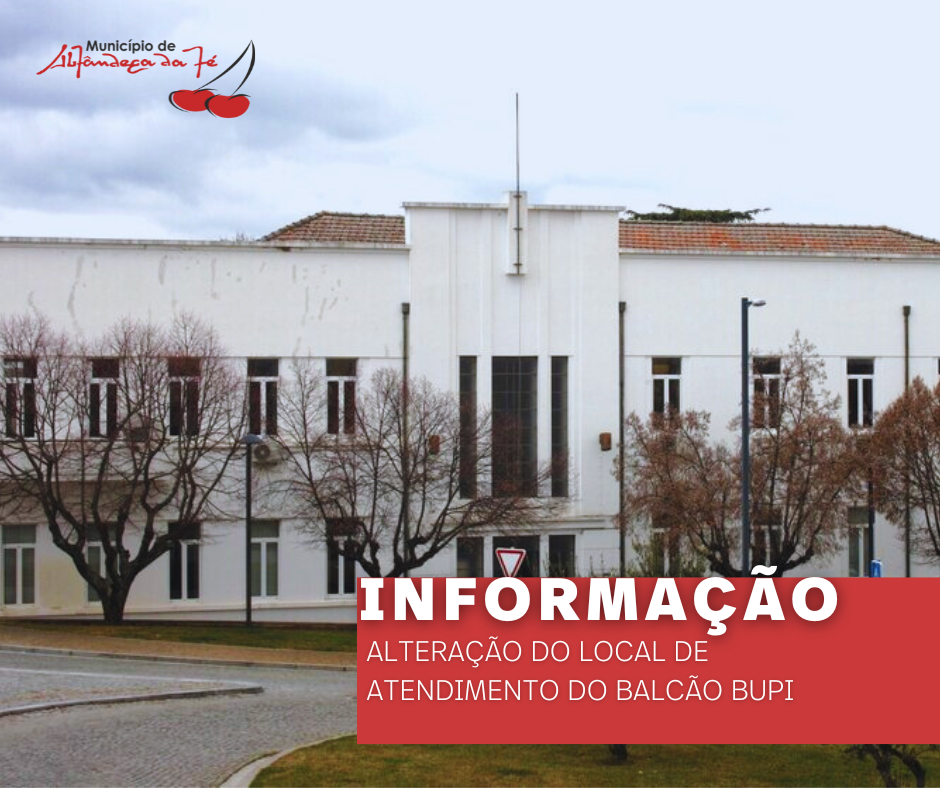 Informam-se todos os munícipes que, partir do dia 14 de janeiro de 2026, o BUPi – Balcão Único do Prédio passará a funcionar no rés-do-chão do edifício de Ação social (câmara antiga).