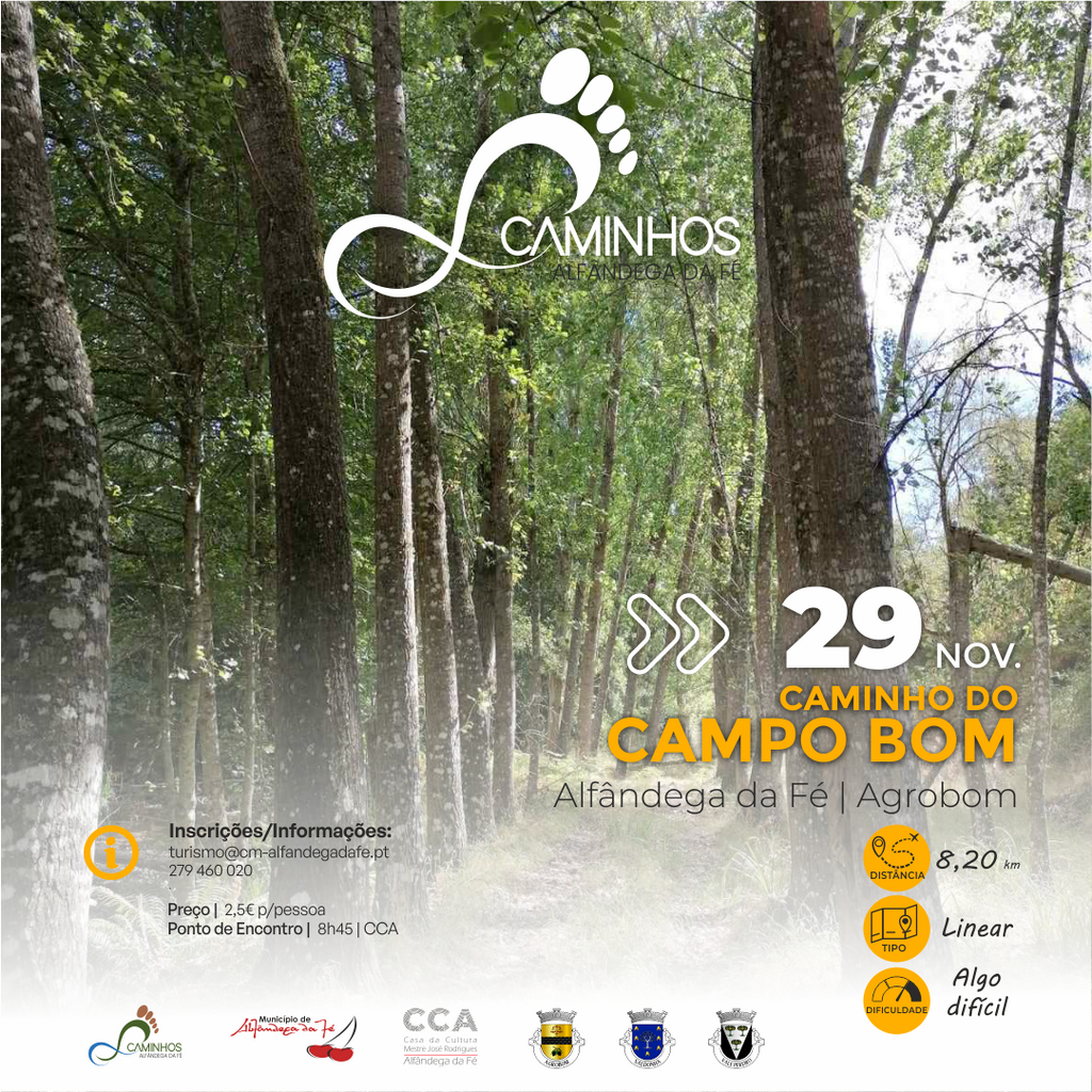 Partindo da Barragem da Estevainha, em Alfândega da Fé, a rota liga a aldeia do Castelo a Agrobom, atravessando paisagens e cores outonais. Um percurso tranquilo e envolvente, que convida a uma conexão profunda com a natureza e o mundo rural.